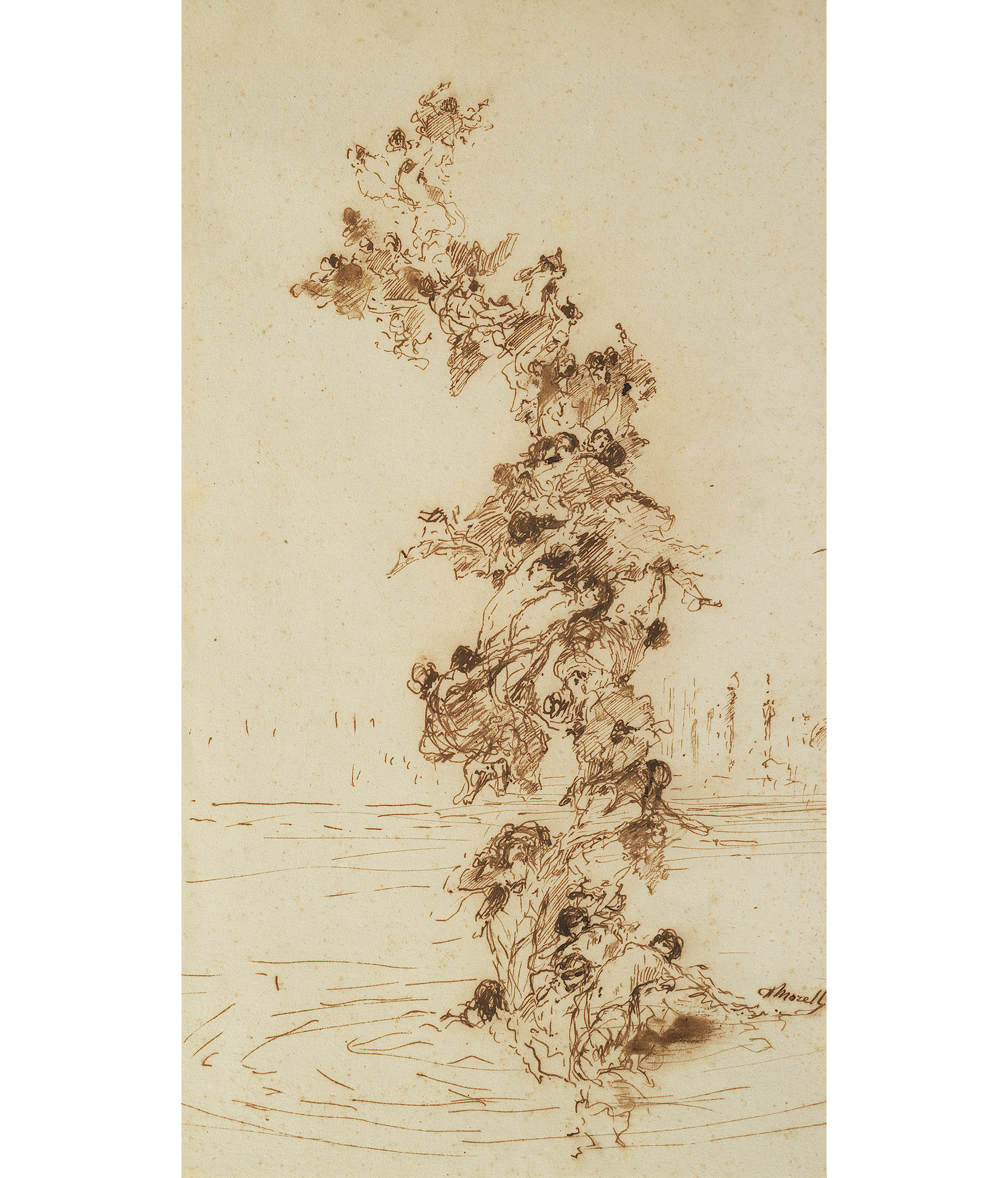 Ink on paper, signed ‘D Morelli’ Lower left 45.5 x 26 cm